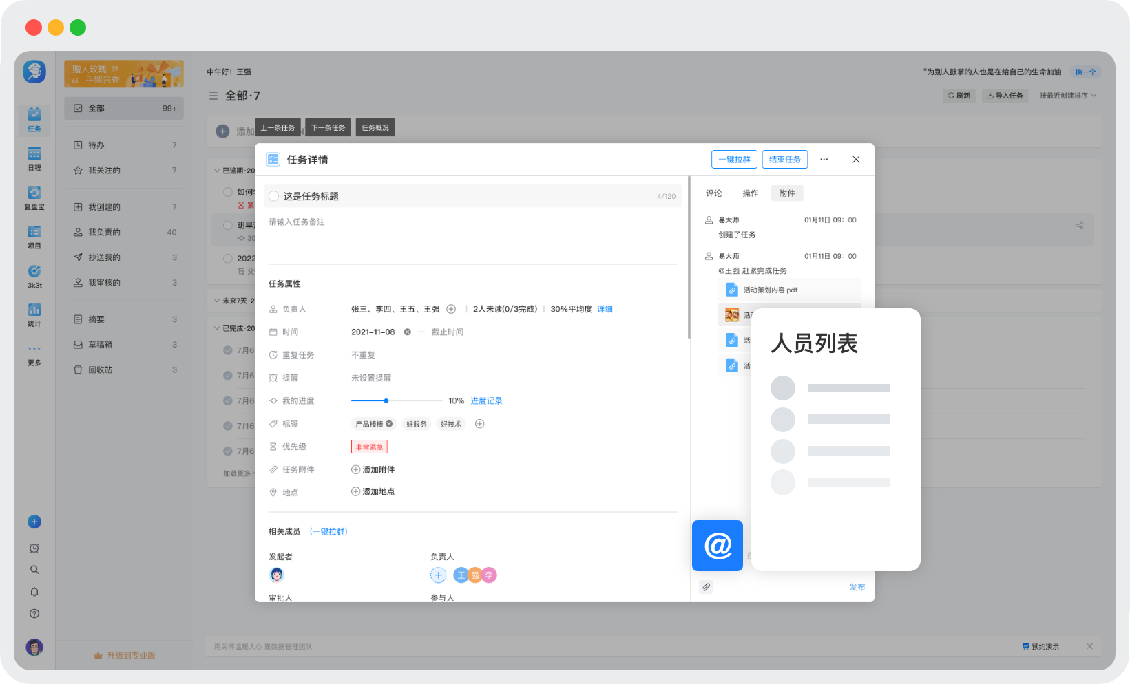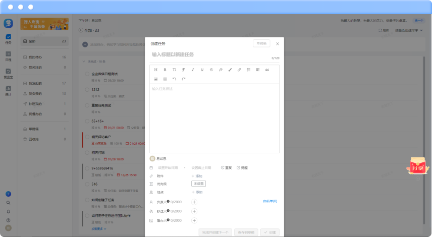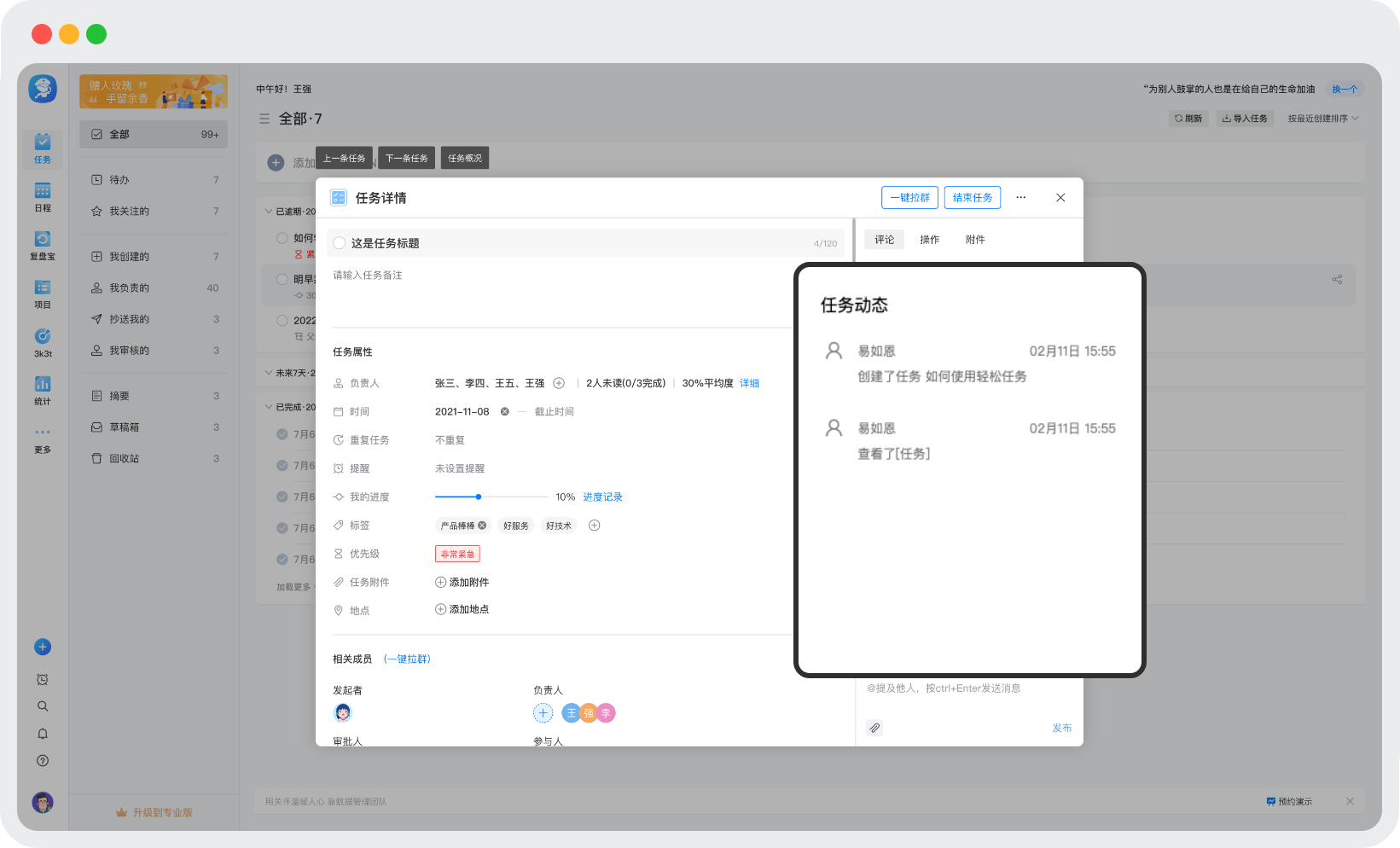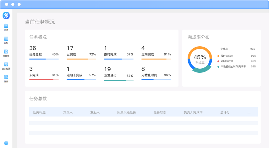 企业管理者必备,让工作更简单 管理每件重要的事项,言必行行必果,提升团队协同效率 任务过程进度透明,最终目标结果一致,年终数据一目了然