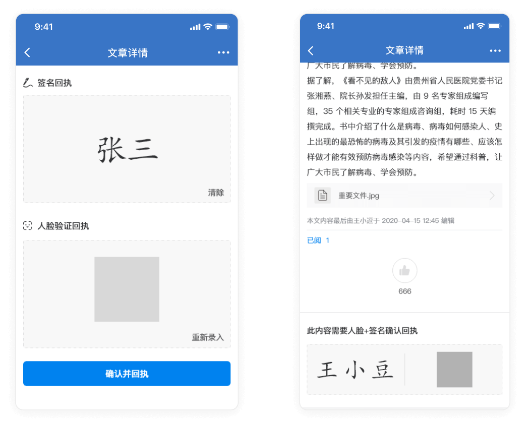 重要消息 设置阅读回执 人脸或签名, 确保触达!